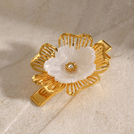 18K gold flower-shaped inlaid gemstones with hollow design, light luxury and noble hair accessories