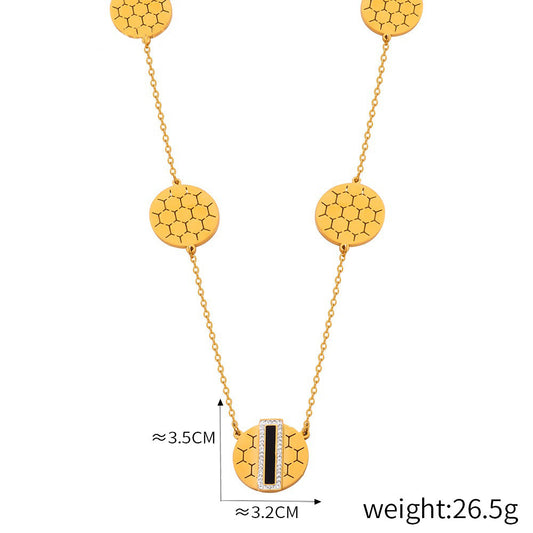 18K gold elegant geometric round inlaid gemstone with honeycomb design necklace