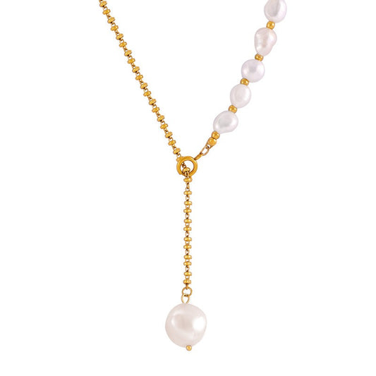 18K gold elegant and noble tiger eye stone beaded design light luxury style necklace and earrings set