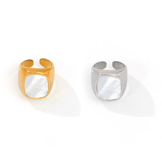 18K gold elegant geometric/square gemstone-inlaid design light luxury style ring