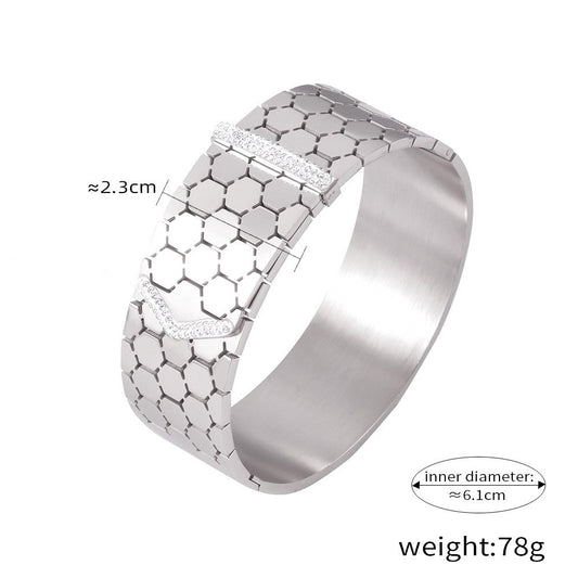 18K gold elegant diamond-studded bracelet with open design and simple style