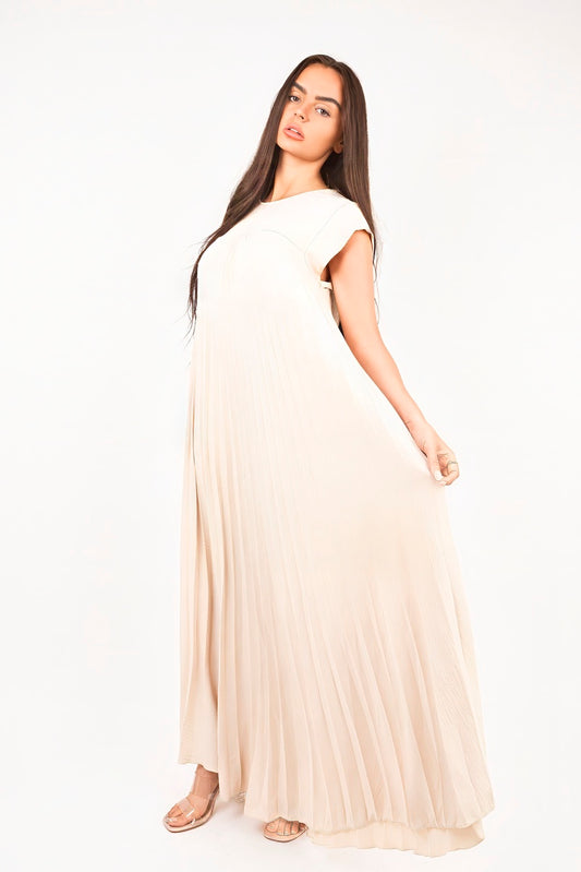 Pleated Cap Sleeve Maxi Dress