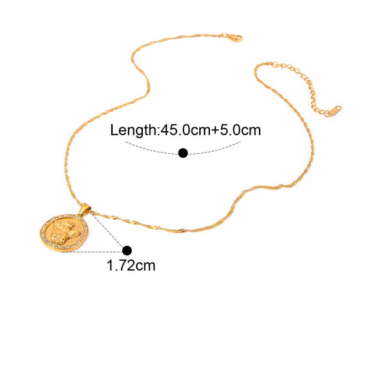 18K gold exquisite and noble medallion portrait with pearl double layer stacking design versatile necklace