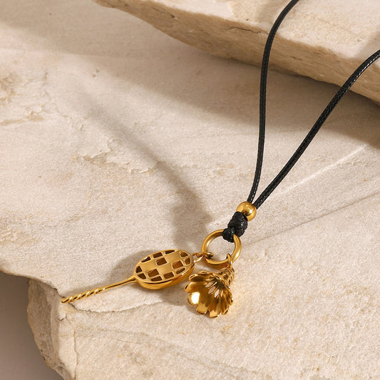 18k gold bead chain with round beads inlaid with gemstone design simple style necklace
