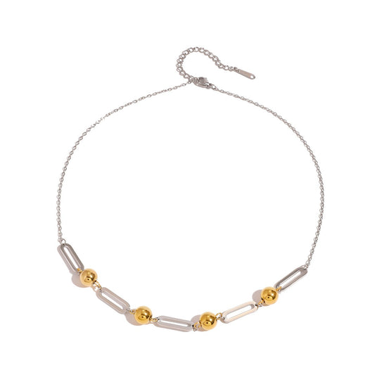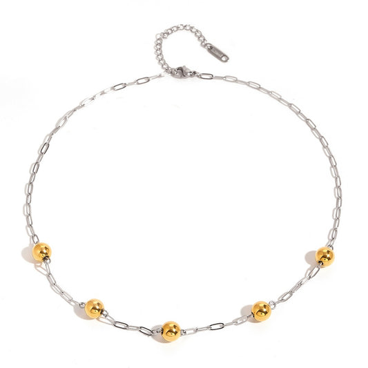 18K gold ball with gold and silver color matching design high-end necklace and bracelet set