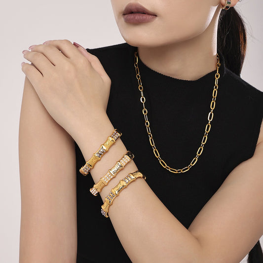 18K gold bamboo knot with inlaid pearl design light luxury noble open bracelet