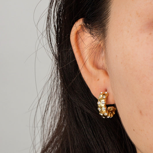 18K Gold Fashion Dazzling C Shape Inlaid Zircon Polished Earrings