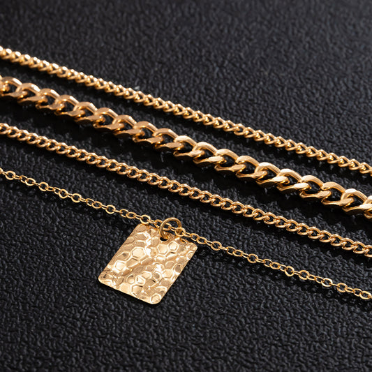 18K Gold Fashion Personality Square Pendant Design Hip Hop Necklace