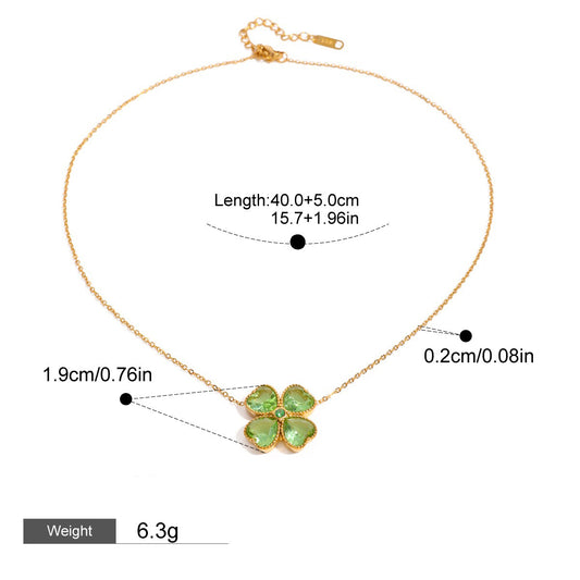 18K Gold Four-Leaf Clover Shaped Gemstone Design Luxury Necklace