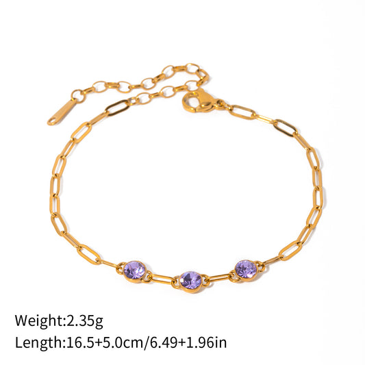 18K gold chain inlaid gemstone design light luxury noble bracelet