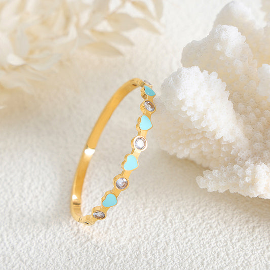 18K gold classic fashionable heart-shaped stitching round zircon design bracelet