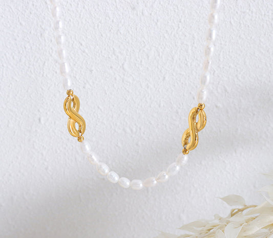 18K gold classic fashion pearl with number "8" design necklace