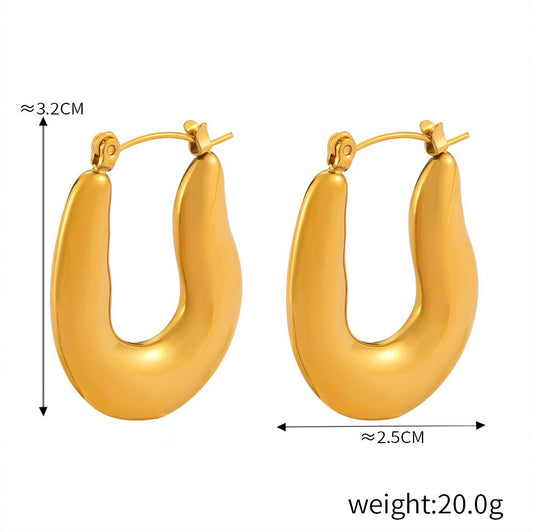 18K gold simple personality U-shaped design light luxury style earrings necklace set