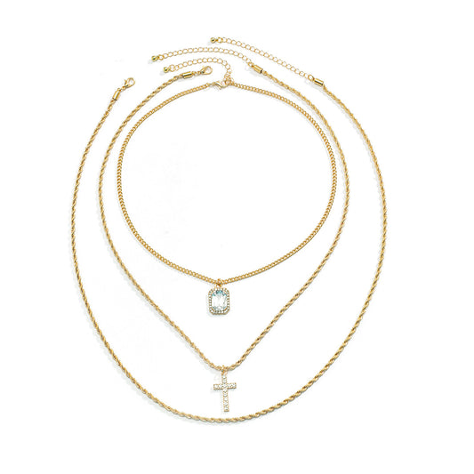 18K Gold Three-Layer Cross Design High-End Unique Necklace