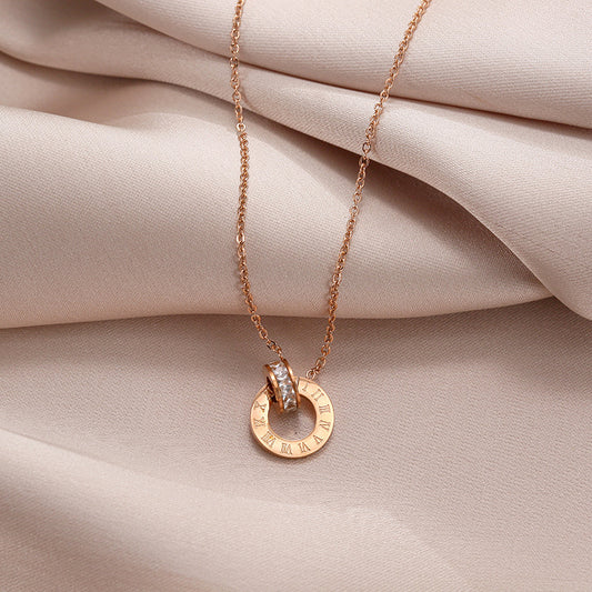 18k Rose Gold Double Hoop Diamond Necklace