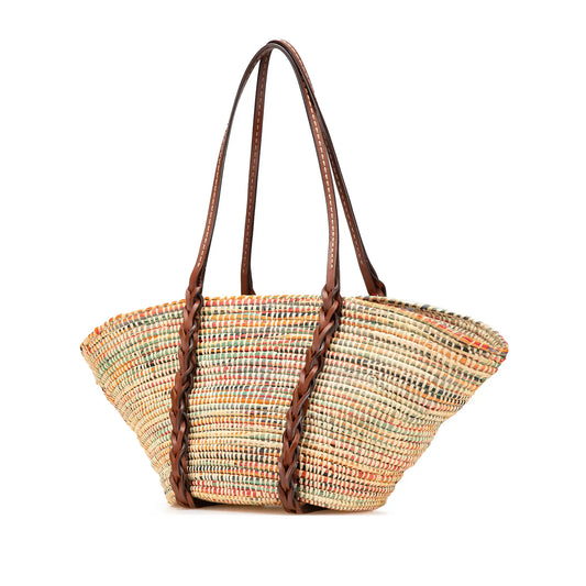 Prada Vitello Trimmed Raffia Paglia Basket Bag