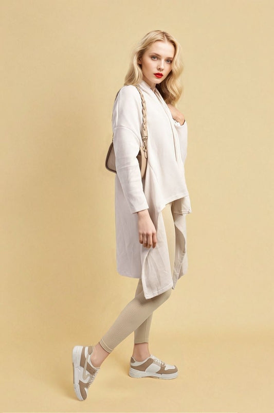 It drapes. It flows. It disarms. These aren’t grandma’s cardigans—they’re armor disguised as knit. For women who walk in grace but govern with quiet fire.