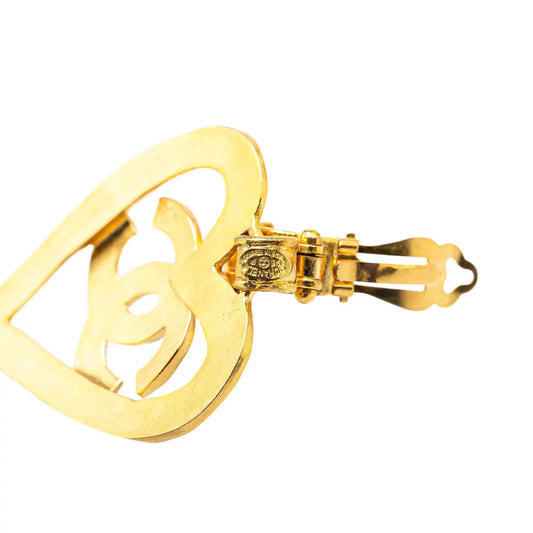 Chanel CC Gold Plated Heart Drop Clip On Earrings