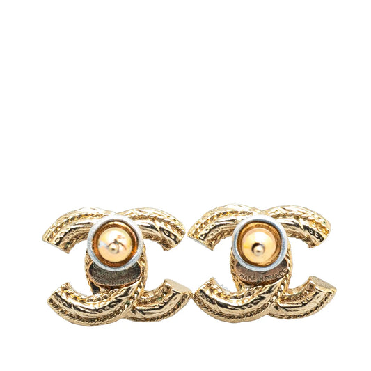 Chanel CC Gold Plated Faux Pearl Push Back Earrings