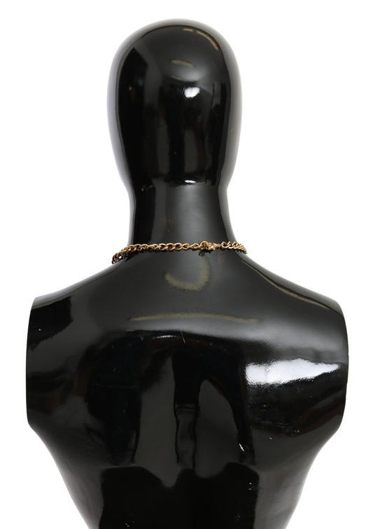 Dolce & Gabbana Gold Brass Clear Crystal Bow Chain Choker Necklace