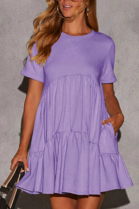 She Wears Glory™ Tiered Round Neck Short Sleeve Mini Dress