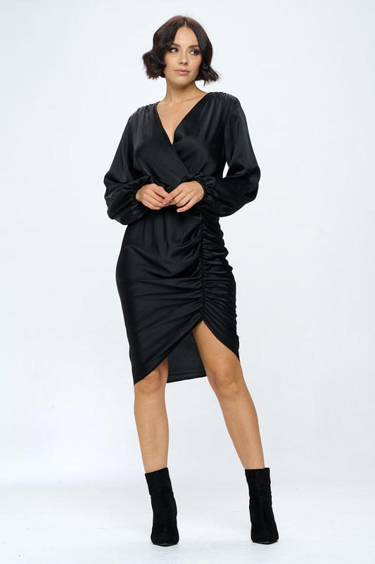 She Wears Glory™ Stretch Satin Dress with Ruched Asymmetrical Hem