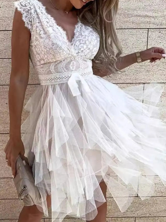She Wears Glory™ Lace V-Neck Ruffle Dress