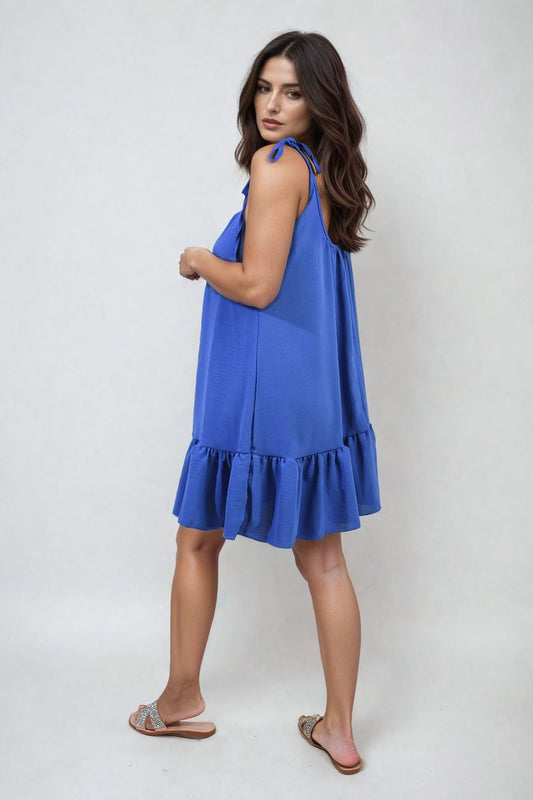 She Wears Glory™ Backless Tie-up Spaghetti Strap Frill Hem Mini Dress