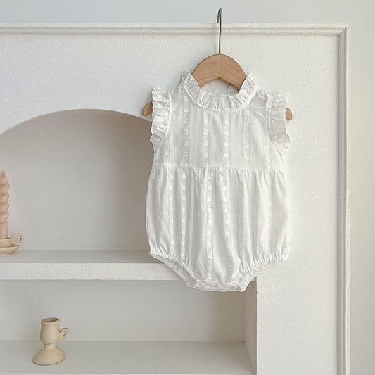 Why Choose Plain? Summer Baby Girls Sleeveless Polka Dot Onesie with Vintage Charm
