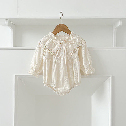 Why Should Autumn Be Dull? Floral Embroidery Bow-Collar Onesie for Baby Girls