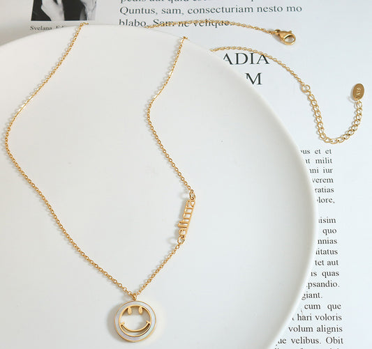 18K Gold Fashionable White Seashell Smiley Face Design with English Alphabet Pendant Necklace
