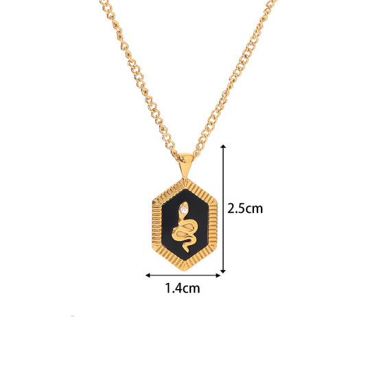18K Gold Vintage Fashion Square Set Diamond Snake Design Pendant Necklace