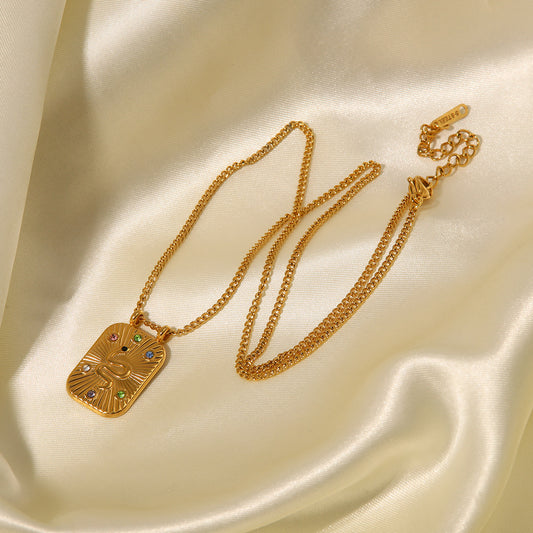 18K Gold Fashionable Simple Square Star Double Plate Design Pendant Necklace