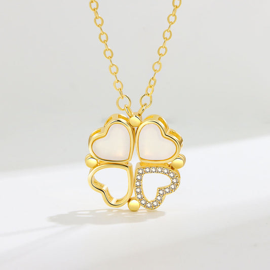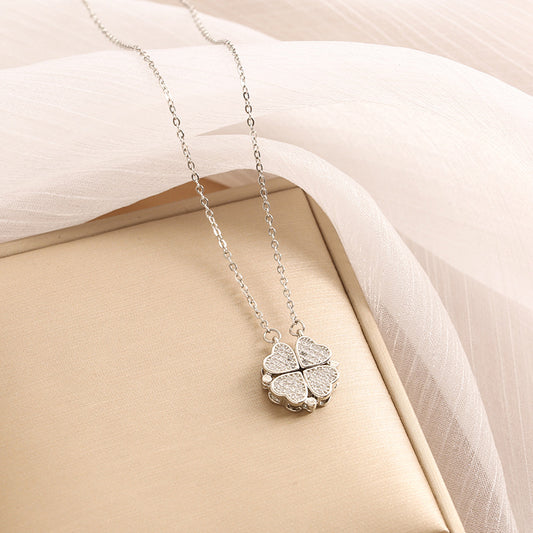 Trendy and fashionable four-leaf clover with heart-to-heart, a two-wear design light luxury style necklace
