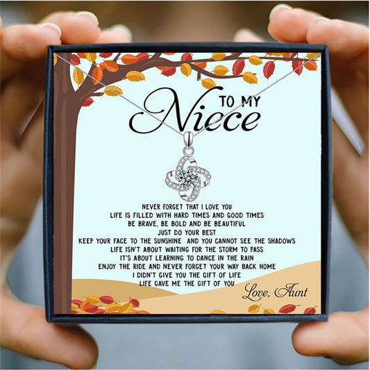 Delicate Swirling Clover Diamond Design Gift Box Pendant Necklace for Niece
