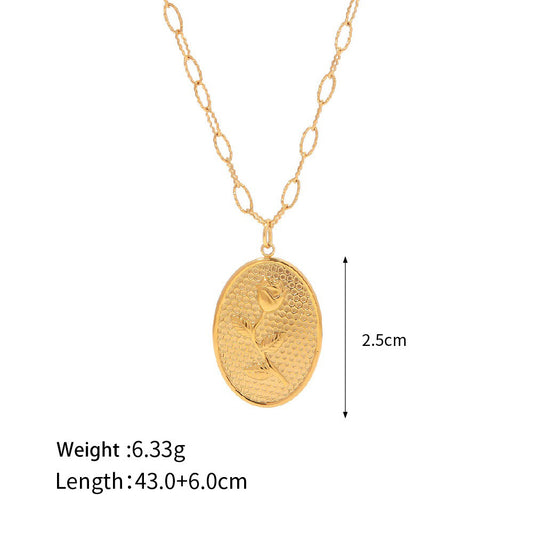 18K gold retro fashion oval with rose design light luxury style pendant necklace