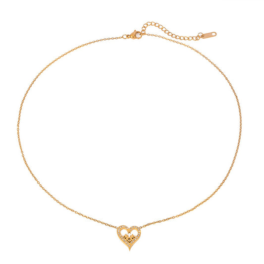 18K gold trendy unique hollow heart inlaid with diamonds and pendant necklace with letter MOM design
