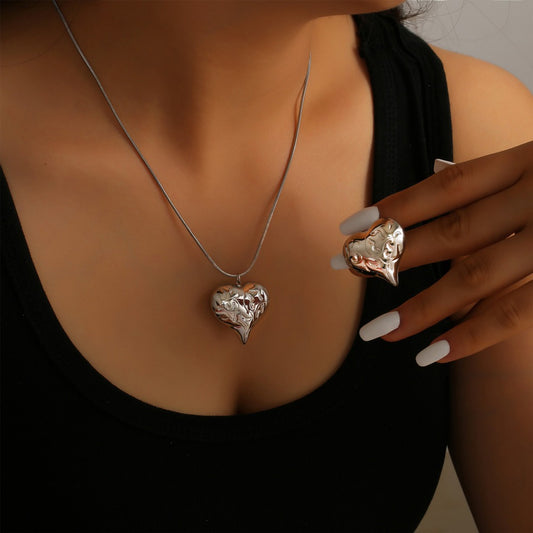 18K gold exquisite and noble heart with texture design light luxury style necklace and earrings set