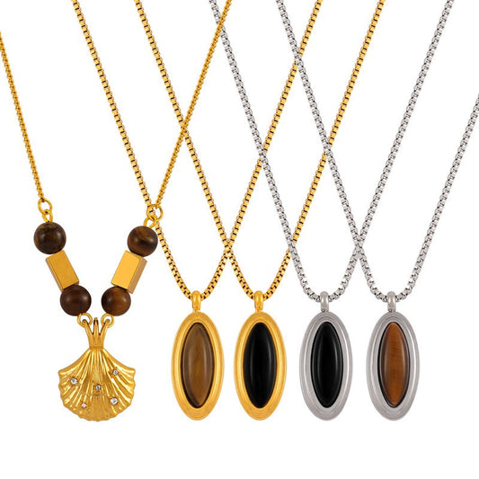 18K gold stylish simple geometric / oval gemstone necklace