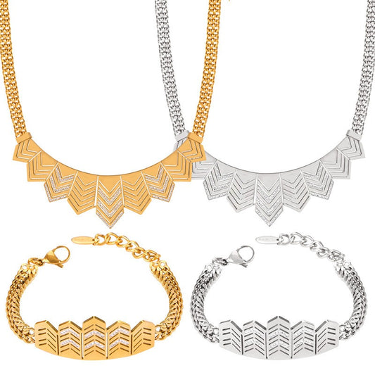 18K gold exaggerated personality arrow inlaid gem design light luxury style necklace bracelet set