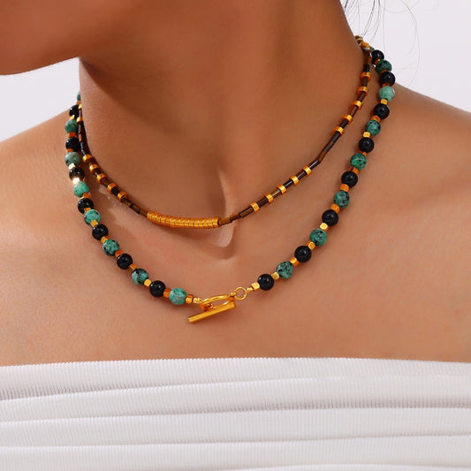 18K gold classic retro gemstone beaded design light luxury style necklace