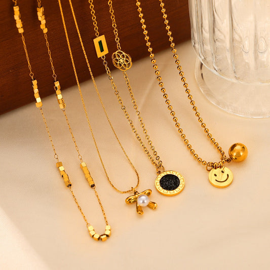 18K gold fashion personality smiley face/bow/geometric design versatile necklace