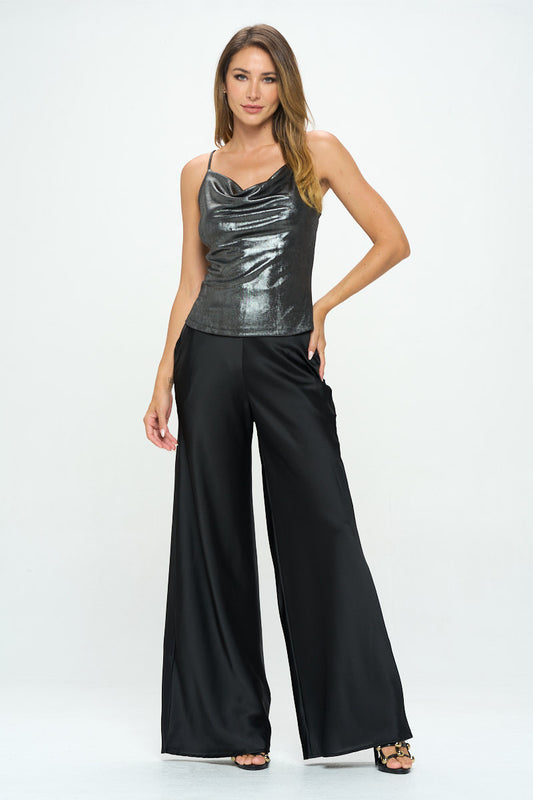 She Wears Glory™ Lurex Metallic Knit Cowl neck Tank Top
