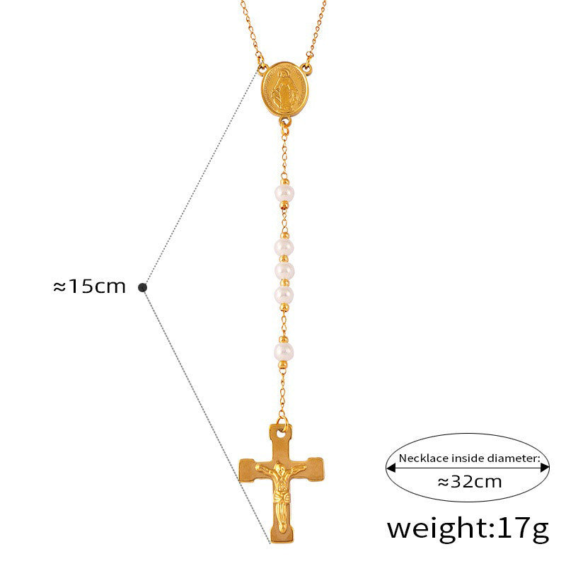 18K gold classic retro cross with portrait design light luxury style necklace
