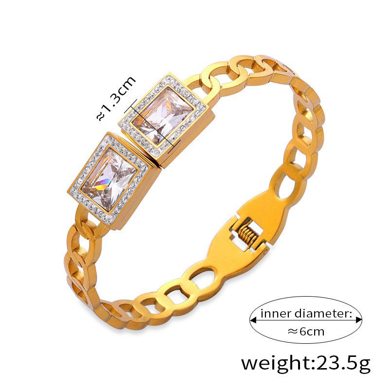 18K gold exquisite dazzling inlaid gemstone with texture design light luxury style bracelet