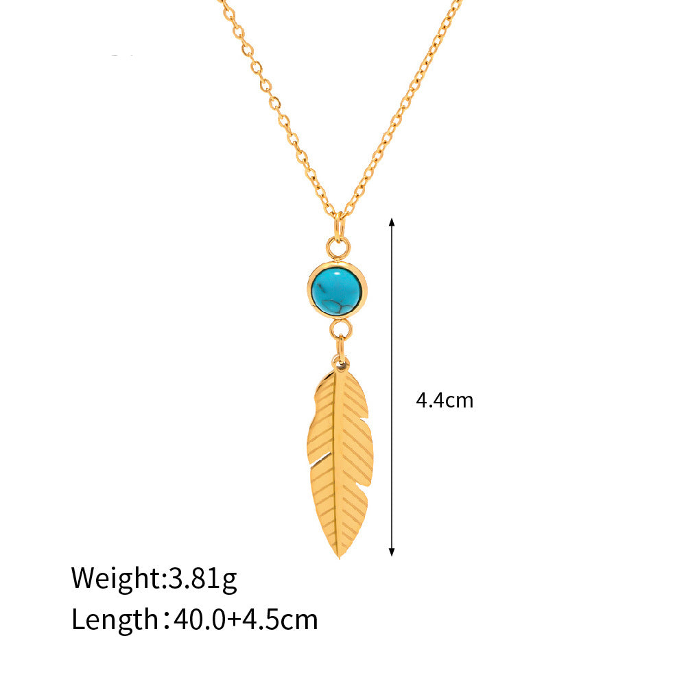 18k Gold Exquisite Fashion Feather Inlaid Turquoise Pendant Design Versatile Necklace