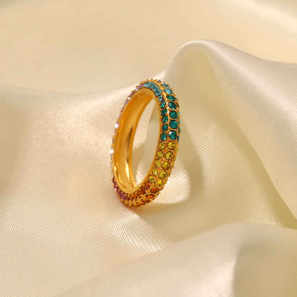 18K Gold Exquisite Fashion Inlaid Color Diamond Versatile Ring