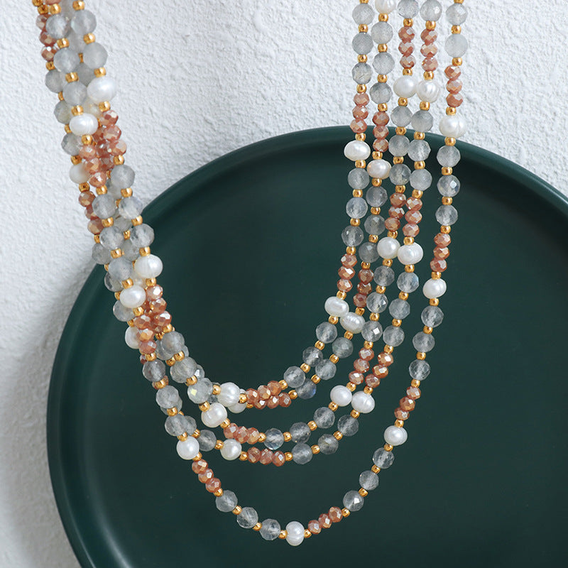 The uniqueness of this necklace lies in its delicate design and colorful gemstones, perfectly combined with pearls. It is a piece of jewelry that is both noble and stylish, suitable for every occasion.