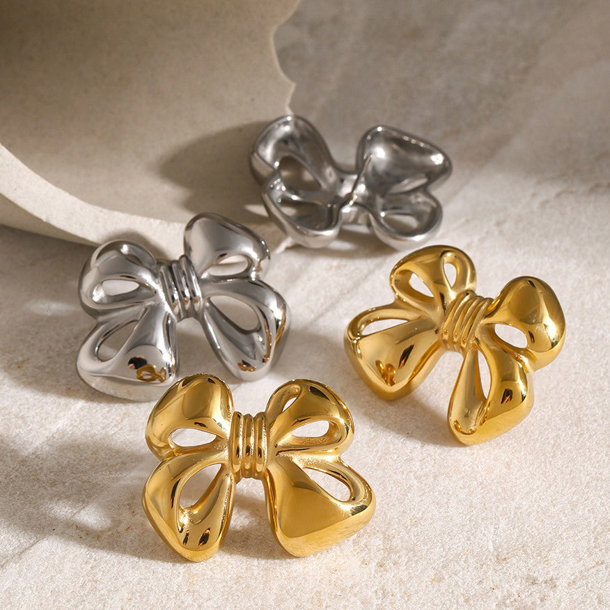 This necklace, ring and earring set, with its classic bow design and simple yet luxurious style, shows the perfect combination of modernity and elegance. Whether it is worn daily or attended on special occasions, this set can add a touch of nobility and elegance to your look. The bow design makes the accessories look sweet and fashionable, while the 18K gold material provides high-quality luster and durability. As a gift for relatives and friends, or to add a unique charm to yourself, this set is your ideal choice.