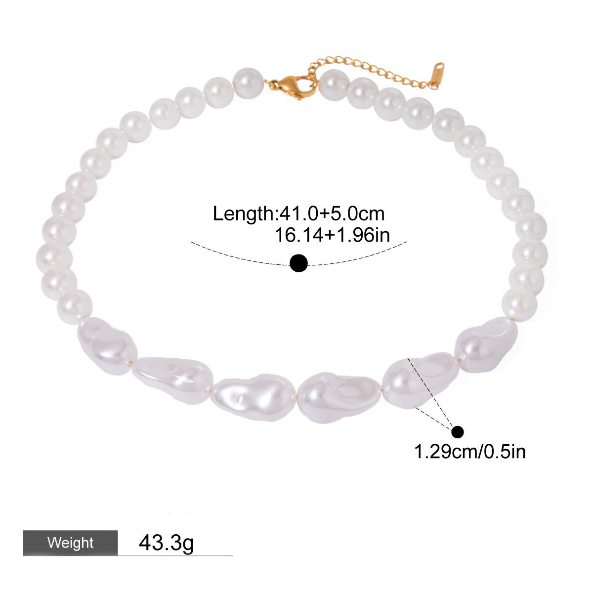 This 18K Gold Pearl Beaded Design Trendy Necklace masterfully blends irregular pearls with a sleek, modern aesthetic, embodying both luxury and understated elegance. Crafted from durable stainless steel with lasting 18K PVD gold plating, it resists fading and scratches while remaining hypoallergenic and waterproof. The necklace features high-quality pearls with a warm, natural luster, arranged alongside uniquely shaped irregular pearls that add artistic flair. Its simple yet sturdy 18K gold chain perfectly complements the pearls, making this piece ideal for elevating any outfit—from everyday wear to special occasions—with a touch of refined sophistication and contemporary style.
